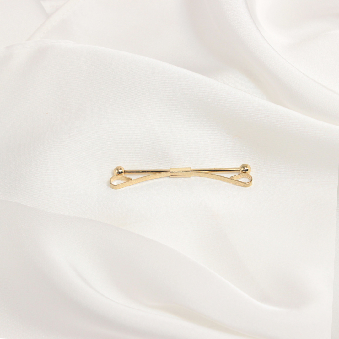 A standout piece with curved looped ends and a sleek clasp center, this collar pin bar adds vintage elegance to any dress shirt. Perfect for elevating your tie knot with polished sophistication.