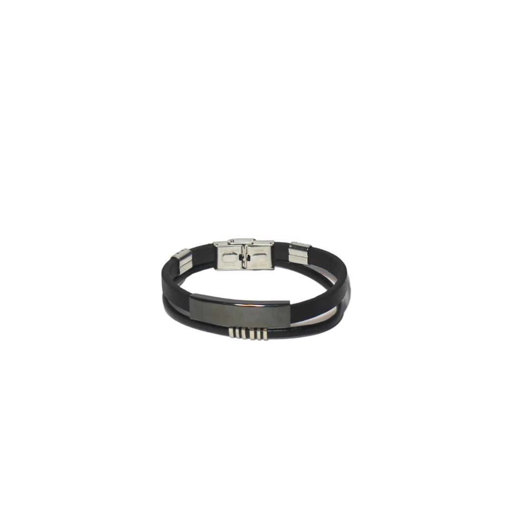 The Graphite Steel Accent Minimalist Bracelet features a sleek leather strap paired with a refined dark gray stainless steel patch and additional steel accents for an extra touch of style. Its minimalist design adds a sophisticated edge to any outfit.