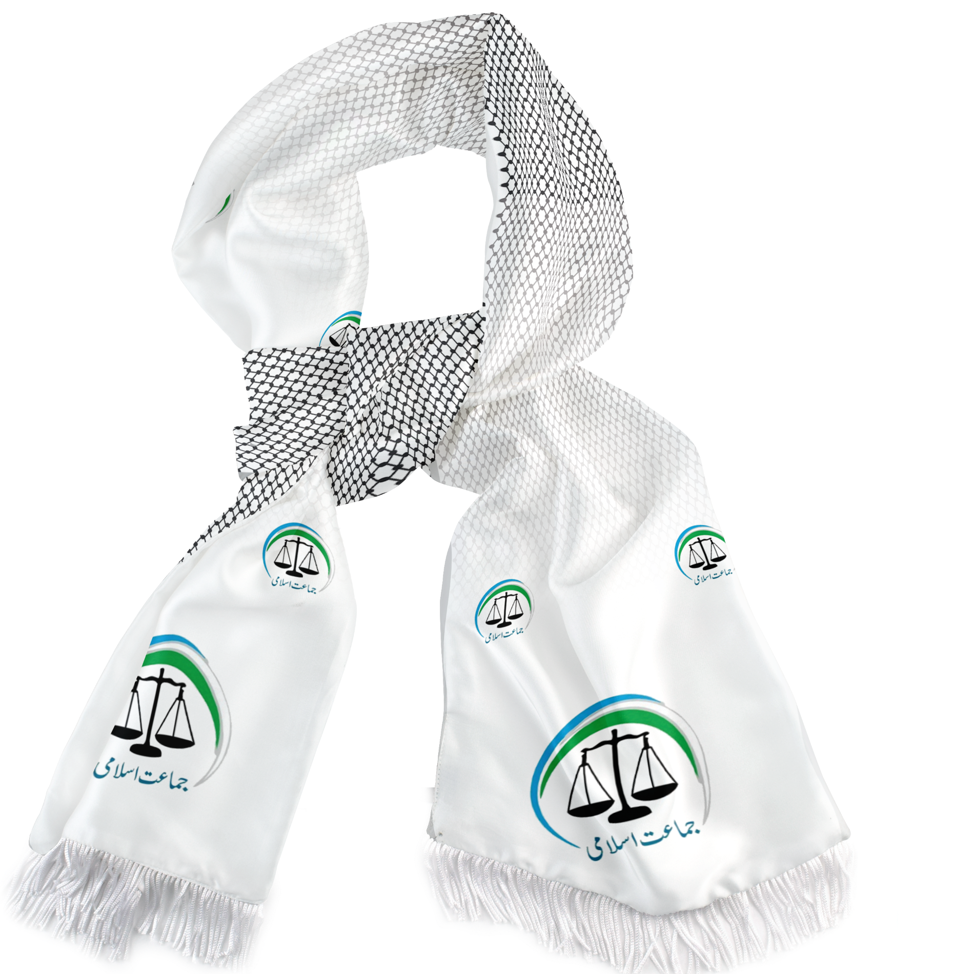 JI's "TARAZU" silk scarf represents their mission of uniting Muslims from all backgrounds under a common vision of a just and compassionate society. The scarf features intricate Islamic patterns and symbols and is made from high-quality silk to ensure comfort and durability. Wear it with pride as a symbol of your commitment to the principles of Jammat-e-Islami and the greater Islamic community.