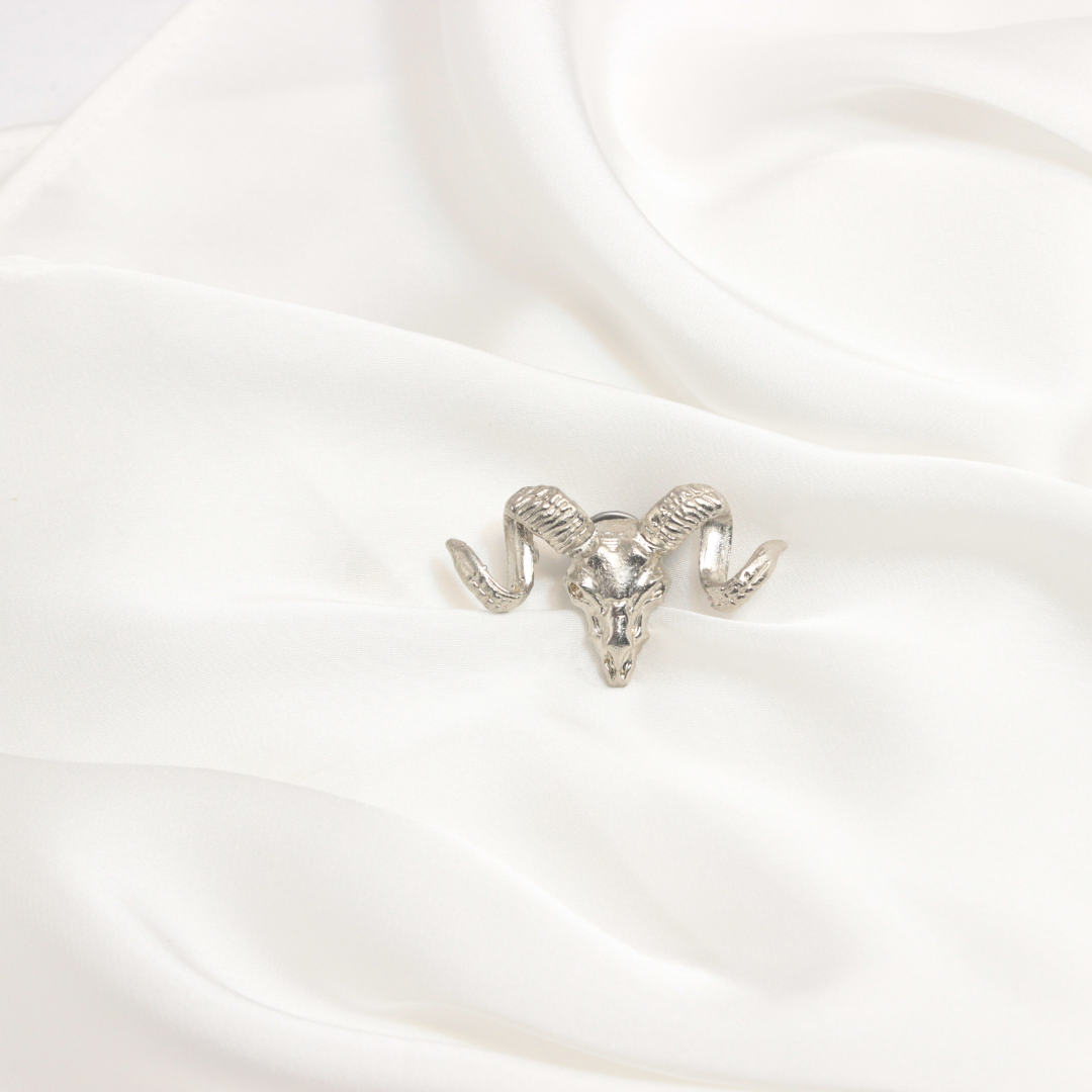 Sculpted in metal with gold and silver finishes, this brooch blends power with heritage.