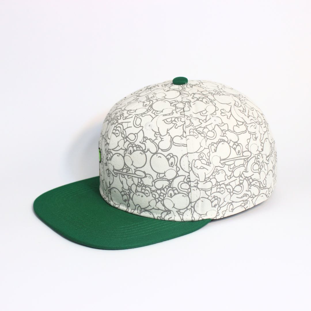 Crafted from 100% cotton with bold Yoshi embroidery, this flat-brim snapback features a back adjustable strap—perfect for Nintendo and Super Mario fans who love repping their favorite character in style.