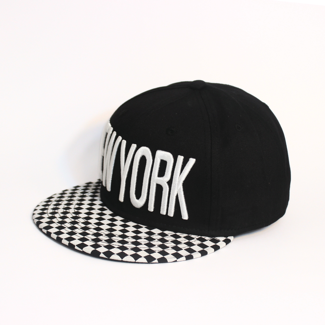 Made from premium cotton, this cap features a bold black and white checkered brim, with striking white New York embroidery, and an adjustable snapback strap for a sharp, street-ready fit.