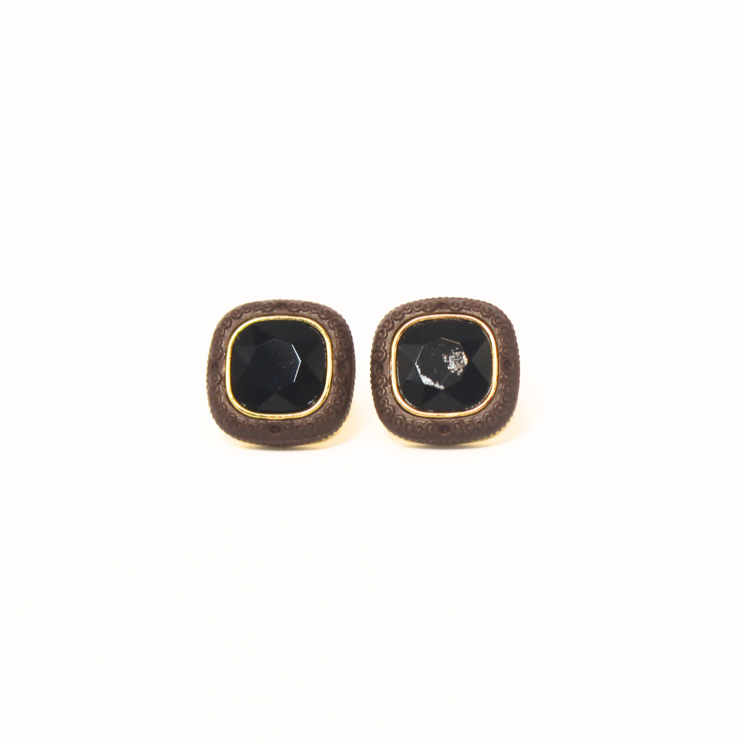 Radiant Gem Black & Brown Cufflinks – A timeless fusion of elegance, featuring a striking black stone encased in a rich brown border. Set on a luxurious gold metallic base, this design exudes sophistication with a bold yet classic appeal.