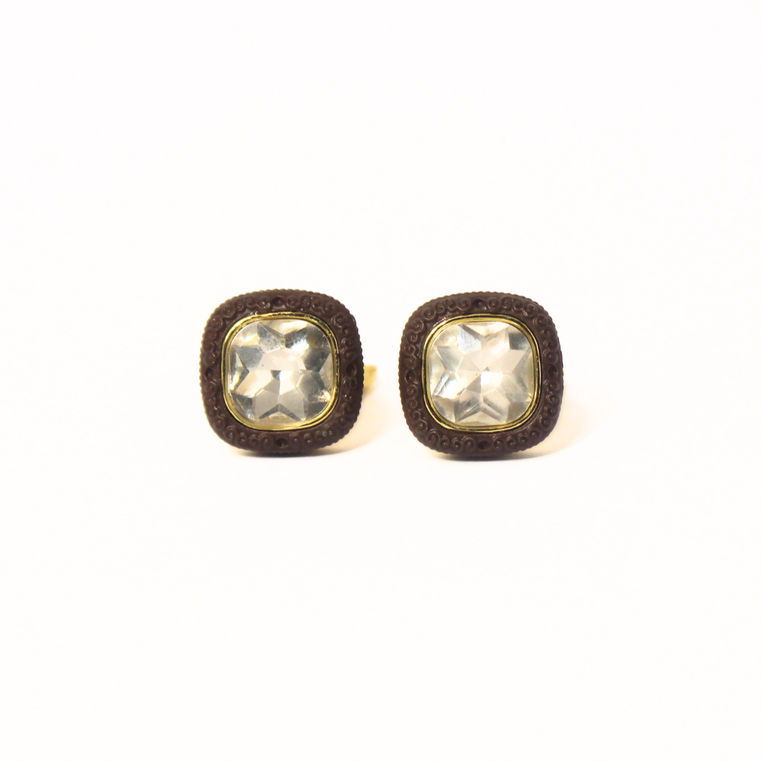 Radiant Gem Crystal & Brown Cufflinks – Featuring a pristine crystal-clear stone framed by a rich brown border, set on a golden steel base. This elegant combination blends brilliance with warmth, creating a refined and sophisticated look.