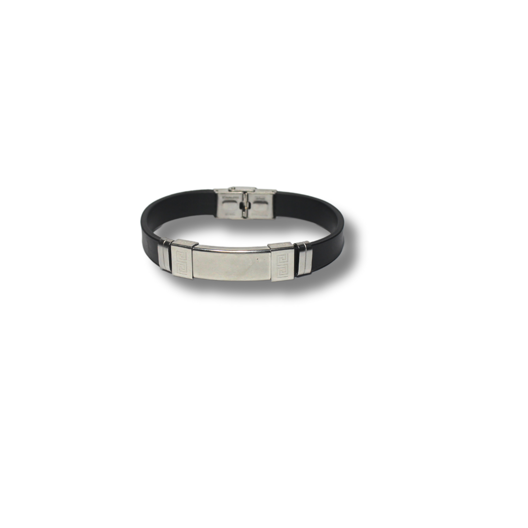 Sleek Style Bracelet features stylish metal panels on the front paired with a rubber strap for a modern look. It’s finished with a sleek metallic hook at the back for a secure fit and added sophistication.