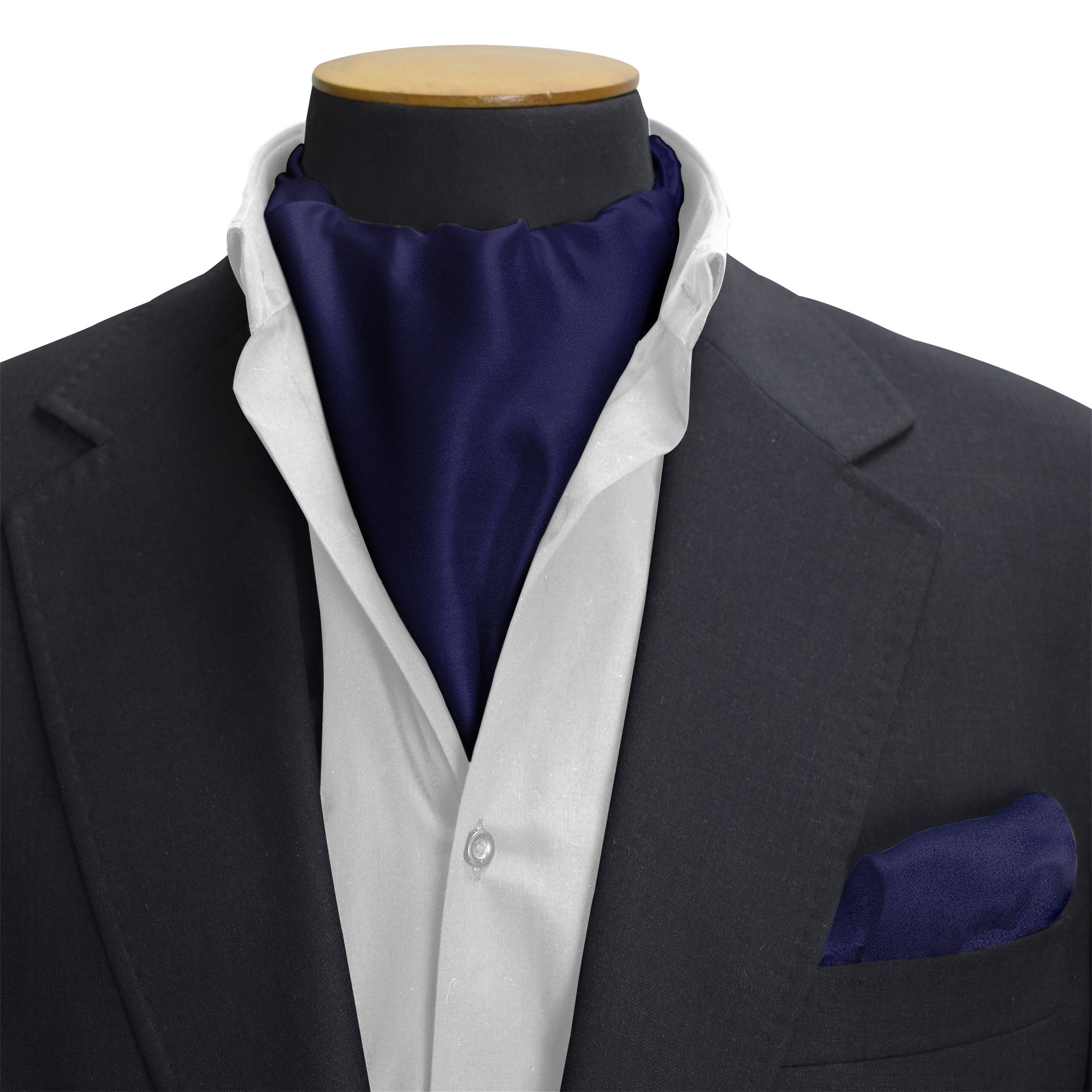 SOLID BLUE SILK CRAVAT & POCKET SQUARE SET