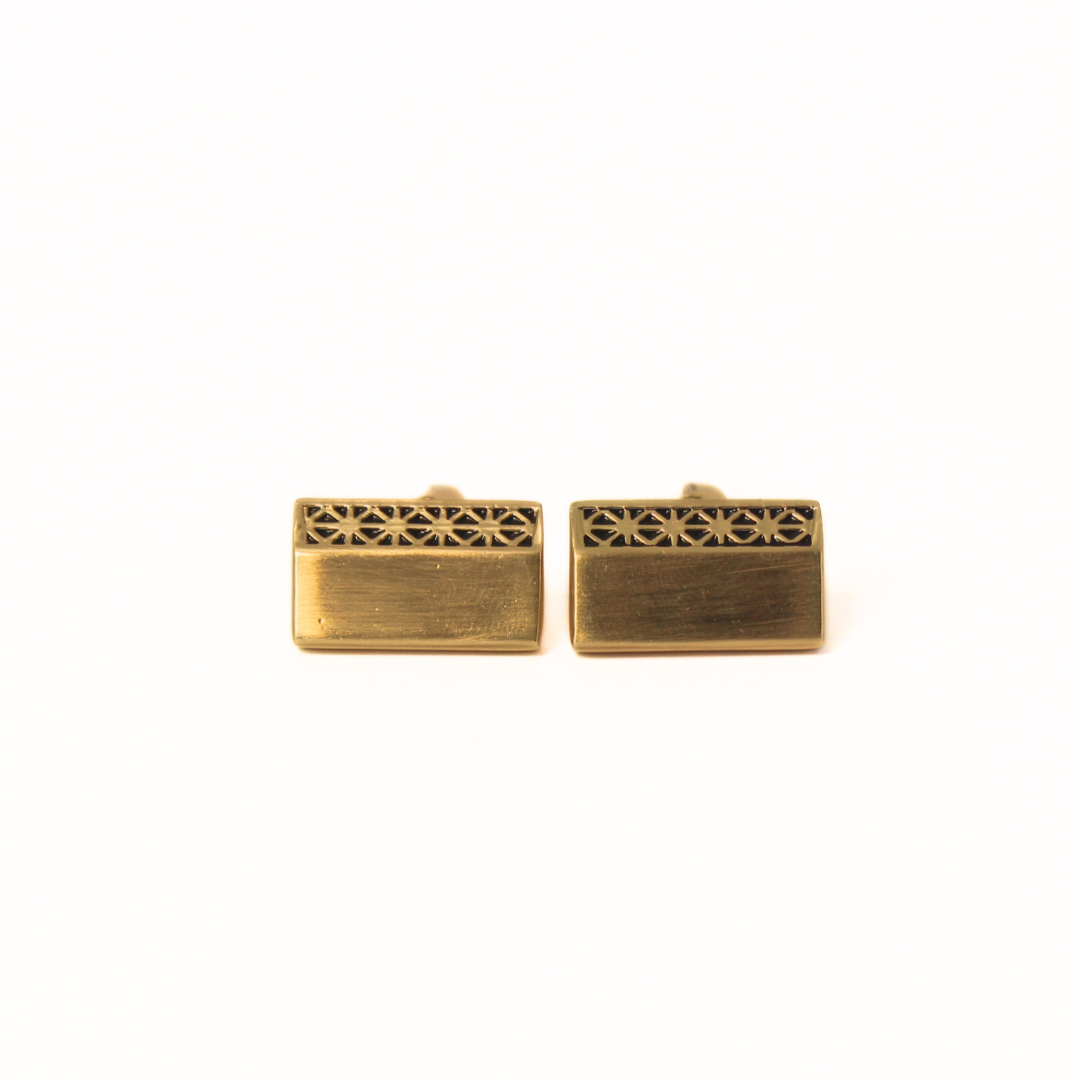 The Steel Crest Golden Cufflinks boast a bold rectangular design with a sleek carved pattern on the upper corner, combining a heavy feel with refined elegance. Their polished gold tone finish adds a touch of luxury to any formal ensemble.