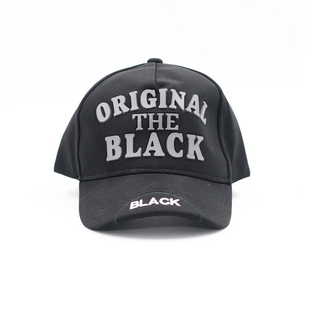 Introducing "The Original Black Baseball Cap," featuring a sleek grey logo and a shiny back strap for easy size adjustment. The deep black color exudes class, while the elegant grey writing on the front adds a touch of sophistication.